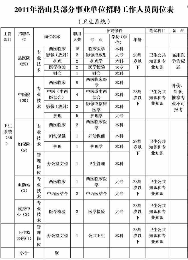 具体见《2011年潜山县部分事业单位公开招聘工作人员岗位表》。