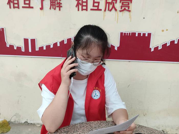 返家乡,做贡献,志愿者们充分发挥医员工专业特长,7月7日,前往和田市金川苑小区协助社区电话提醒居民开展常态化核酸检测、协助工作人员完成居民疫苗接种信息统计、向当地居民宣传防疫健康卫生知识。夏日烈阳抵不过队员们的活动热情,同学们在奉献中展现青春力量,体现皖医担当。